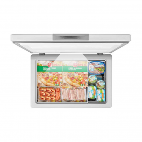 El congelador de 198L cuenta con un innovador sistema de Triple Cooling que permite congelar, mantener y refrigerar alimentos de manera eficiente. Su jaladera integrada incluye una llave de seguridad, garantizando la protección de su contenido. Con un termostato ajustable que va de -24°C a 10°C y un evaporador tipo “D”, este congelador asegura una óptima distribución de temperatura. Además, su sistema de drenado frontal facilita el mantenimiento, mientras que las patas niveladoras y ruedas permiten un desplazamiento sencillo. Diseñado con un compresor ecológico que utiliza gas R600 y ciclopentano, este modelo ofrece un ahorro energético del 26.8%. Su estructura de una sola pieza y recubrimiento de acero garantizan durabilidad, complementado con luz LED y canasta organizadora para un acceso fácil a los alimentos.