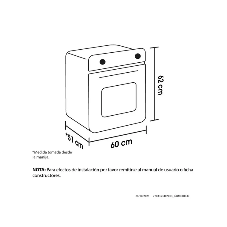 Medidas Externas (Ancho x Alto x Fondo): 60 x 62 x 51 Centímetros
